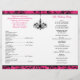 This modern and trendy hot fuchsia pink, black and white chandelier wedding program or Order of Service has an ornate pink and black scroll and swirl pattern background that matches the chic wedding invitation shown below. ****PLEASE NOTE that the higher grade paper is a card stock and does not fold well. All text is customisable. If you require any matching items, or if you want another colour combination or if you need help getting your information to fit, please email your request to niteowlstudio@gmail.com. If you would like to have more elegant fonts with pink headings for the wedding party, I'd be happy to do that for you, but there would be a $25 design fee, payable through Paypal first.