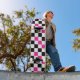 Pink Black White Chequered Pattern Design Skateboard