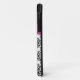 Personalised modern hot pink, black, and white damask Case-Mate Barely There™ iPhone 5 Case with FAUX ribbon and jewelled brooch.