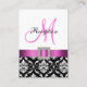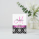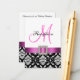 Pink Black White Damask Reception Enclosure Card. Elke Clarke©. Graphics licensed. Elegant black and white damask pattern with a photo print of pink satin ribbon, square brooch with photo print of white diamonds, pink monogram initial on the front and the wedding reception information on the back of the card. Customise with your information and monogram.