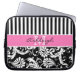 Pink, Black, White Damask Stripes Laptop Sleeve