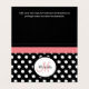 Pink Black White Polka Dot Monogram Square Busines Business Card
