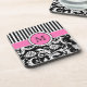 This modern and trendy monogrammed hot pink, black, and white stripes with floral damask coaster set would make an ideal house-warming gift for the hip, young couple. Customise it however you want!