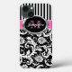 This personalised pink, black, and white stripes and floral damask pattern iPad Air Case-Mate Barely There Case has a spot for you to add your name, initials, monogram, logo, or other text. If you need any help customising this, please email niteowlstudio@gmail.com.