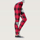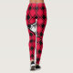 These leggings have a mid-century modern design of solid black diamonds inside black diamond outlines with pink blobs under them, all on a field of white.
