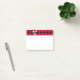This Post-It notepad has a mid-century modern design of solid black diamonds inside black diamond outlines with pink blobs under them, all on a field of white.