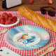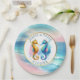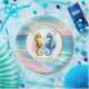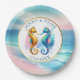 Pretty elegant pink, blue and gold watercolor seahorses beachy paper plates. These are cute for wedding treats or a candy bar.