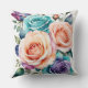 Pink, blue and purple roses cushion