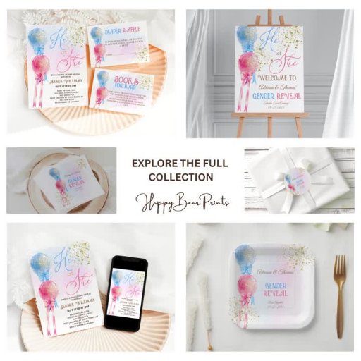 watercolor balloons with bow gender reveal invite