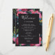 Floral wedding itinerary in black with flowers in pink, blue, and burgundy. Write your itinerary on one side, and a thank you note on the other.