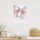 Gender Reveal Party Welcome Sign. This elegant one-sided sign features oversized pink and blue watercolor bows spanning the top, adding a bold and charming touch. The design incorporates grey fonts in a mix of script and serif typography for a sophisticated look.