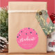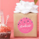 Stylish round graduation sticker featuring the word "Graduate" in a trendy white brush script against a pink background with white and blue confetti scattered on top. Use it to seal your envelopes, favour bags or for decoration. Check out matching graduation party items here https://www.zazzle.com/collections/119637323833384053?rf=238364477188679314