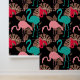Pink Blue Cute Flamingo Tropical Plants Wallpaper