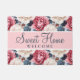 Sweet Home Pink Blue Elegant floral Pattern for door mat with custom text.