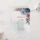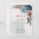 Beautiful botanical wedding seating chart card featuring pink, dusty blue and navy blue flowers with green leaves.