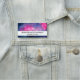 Name tag with a beautiful abstract design in pink and blue. A creative illustration of the universe, with nebula / galaxy looking elements. White stars sprinkled throughout this image of the cosmos. Trippy and cool.
