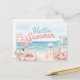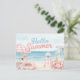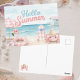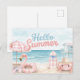 Pink Blue Gingham Hello Summer Beach Coastal Postcard