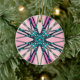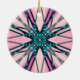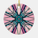 Pink Blue Gray Fractal Snowflake Winter Festive Ceramic Ornament