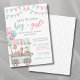 "Boy or Girl, What’s the Scoop?" offers a playful and unique take on a gender reveal invitation. The design features a watercolor pink and teal blue ice cream cart on the bottom left, with festive balloons and triangle flags decorating the top. This sweet theme is perfect for summer celebrations, whether the couple is expecting a boy or a girl.
