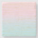 A stone coaster with a cool abstract pattern. Pastel gradient in pink and blue colours with thin gold stripes. The gold stripes/lines are faux gold glitter.