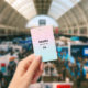 Name tag with a cool abstract pattern. Pastel gradient in pink and blue colours with thin gold stripes. The gold stripes/lines are faux gold glitter.