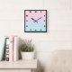 Pink Blue Pastel Gradient with Gold Lines Square Wall Clock