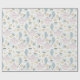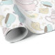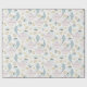 Pink Blue Teapots TeaCups Birds on White Wrapping Paper