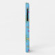Stylish blue iPhone case printed with a tropical pink Hummingbird pattern.