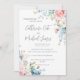 Pink & blue floral arrangements on a white background. A perfect wedding invitation for any season. The watercolor open bloom peonies are just beautiful. Classy & chic.