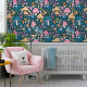 Pink Blue Whimsical Mushroom Pattern Nursery Wallpaper