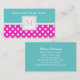 Pink, Blue and White Polka-dot: Monogram Business Card