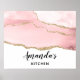 A poster with an elegant and trendy agate design. Pink blush watercolor with a subtle marble agate look and gold glittery ribbon layered in between.