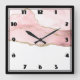 Pink Blush Agate with Gold Ribbon Elegant Square Wall Clock