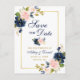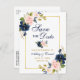 Pink Blush Blue Floral Elegant Gold Save the Date Announcement Postcard