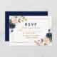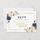 Watercolor Floral Pink Blush Blue Gold Wedding RSVP Card