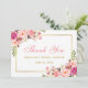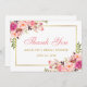 Watercolor Pink Blush Gold Floral Bridal Shower Thank You Card - Pink Script