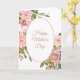 Pretty pink blush rose and green leaf images surround a thin gold lined oval frame on the front of this Mother's Day card. Your custom text is in matching dusty pink on the inside of the oval frame. The images and text are placed on a white background. The inside left of the card is solid matching pink, with your custom text in green and pink on the right side. Easy to customise, so make it say whatever you'd like, or leave the sentiment as it is.