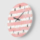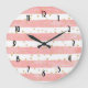 Pink Blush Stripes with Faux Gold Confetti Large Clock