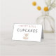 This pink blush woodland deer girl cupcakes card features the cute heading “Sweet Bites” with bold “Cupcakes” text and an adorable baby fawn illustration. Perfect for labeling your dessert table and adding a charming woodland touch to your baby shower celebration.