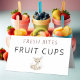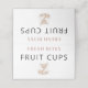 This pink blush woodland deer girl fruit card features the cute heading “Fresh Bites” with bold “Fruit Cups” text and an adorable baby fawn illustration. Perfect for labeling your dessert or snack table and adding a charming woodland touch to your baby shower celebration.
