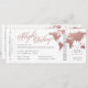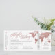 Change the Date announcement boarding pass plane ticket for a destination wedding that looks like a boarding pass plane ticket with an elegant rose gold pink world map travel theme design. The text and background colours are editable so you can design your own card using this template for a unique boarding pass which was designed with a travel theme wedding or vow renewal postponement or reschedule in mind. Visit the Paper Grape Destinations Zazzle Designer collection for coordinating items.