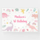 This adorable birthday banner features hand drawn dinosaurs, rainbows and leaves in pastel colours.