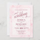 This beautiful wedding invitation features a boho chic design with a gorgeous pastel cotton candy blush pink watercolor floral background of peony flowers or wild roses. It includes fancy script lettering with elaborate flourishes decorating the word "wedding" and the names of the bride and groom prominently displayed in block lettering. Simple, stylish, and glam, this invitation is a lovely way to invite your friends and family to share in your joy on your special day. Perfect for a spring wedding.