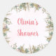 Pink Boho Pampas & Floral Baby Shower Favour Classic Round Sticker