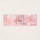 Mini earring display card with centred custom logo template and QR code on a light pink background with soft bokeh glitter lights. The earring guides can be adjusted by adding and removing spaces in the template field, and by moving the whole element in the design tool.