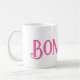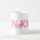 An elegant and fun white mug featuring the French greeting for hello in a fresh pink modern font. Enjoy.