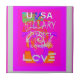 White: Employed for the "USA" and "LOVE" text, offering a strong contrast against the background colours to ensure the words stand out prominently.
