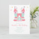 Invite your friends to your birthday party with these adorable invitations featuring a pink inflatable bounce house.