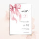 Make your day even more memorable with our 21st birthday invitation featuring a beautiful pink bow design. This elegant and classy invitation is an editable template that you can personalise easily, making it perfect for a 21-year-old girl’s celebration party. With its minimalist style and charming watercolor coquette element, this invitation is not only visually appealing but also practical, allowing you to send a stylish pink ribbon invite with just a few clicks. Choose our printable card to ensure that every detail stands out as you invite friends and family to join in the festivities. Celebrate your journey with a stunning invite.