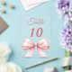 Personalize and your table numbers one by one. A clear background decorated with a large pink colored bow.